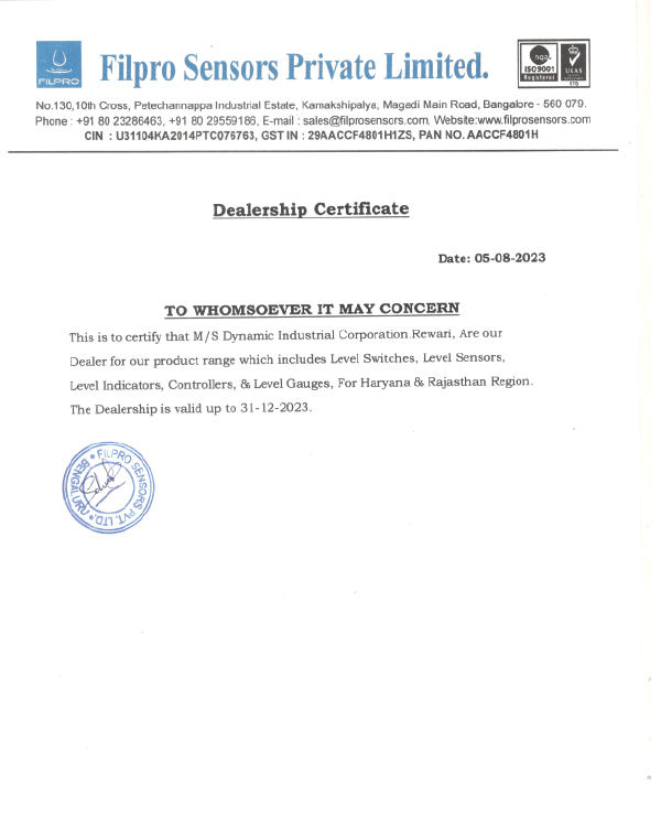 The leading brand of Level Sensing Control devices , Founded in the year 2002 and headquartered in Bangalore India, In the year 2011 our company was certified by Nqa. UKAS for BS EN ISO 9001-2008 standards for implementation of Quality management system.